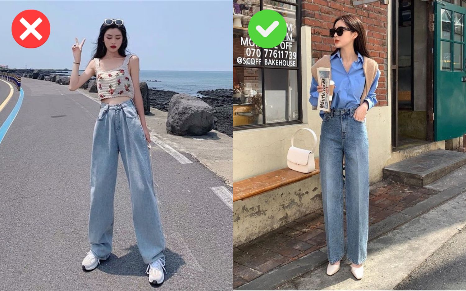 Chị em phụ nữ cùng cần phải lưu ý đối với những chiếc quần jeans thụng để tránh phí tiền cho một item không phù hợp với bản thân. Không bàn về chất liệu, phần ống thụng là điểm trừ rất nặng của kiểu quần này bởi nơ khiến cho người mặc trông có phần mập và thấp hơn so với thực tế. Bên cạnh đó, kiểu quần này gây ra nhiều khó khăn cho chị em khi phối đồ.